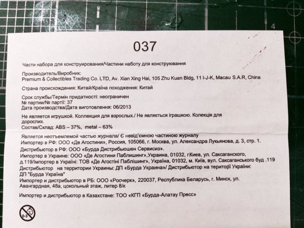 Sidr писал(а): 17 ноя 2018, 12:31 Посмотрите внимательно на вкладыши к деталям, Импортер Деагостини Польша. На обороте есть дата производства.