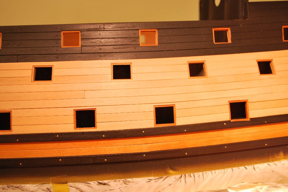 В смысле повернуть против часовой градусов на 5? Конечно стоило, забыл про это, ведь остальной борт был заклеен и линии не читались. Но теперь придется жить с этим. Где-то видел изображение, где линия кормовых балконов не совпадает с линией портов, если вспомню где, то покажу.
