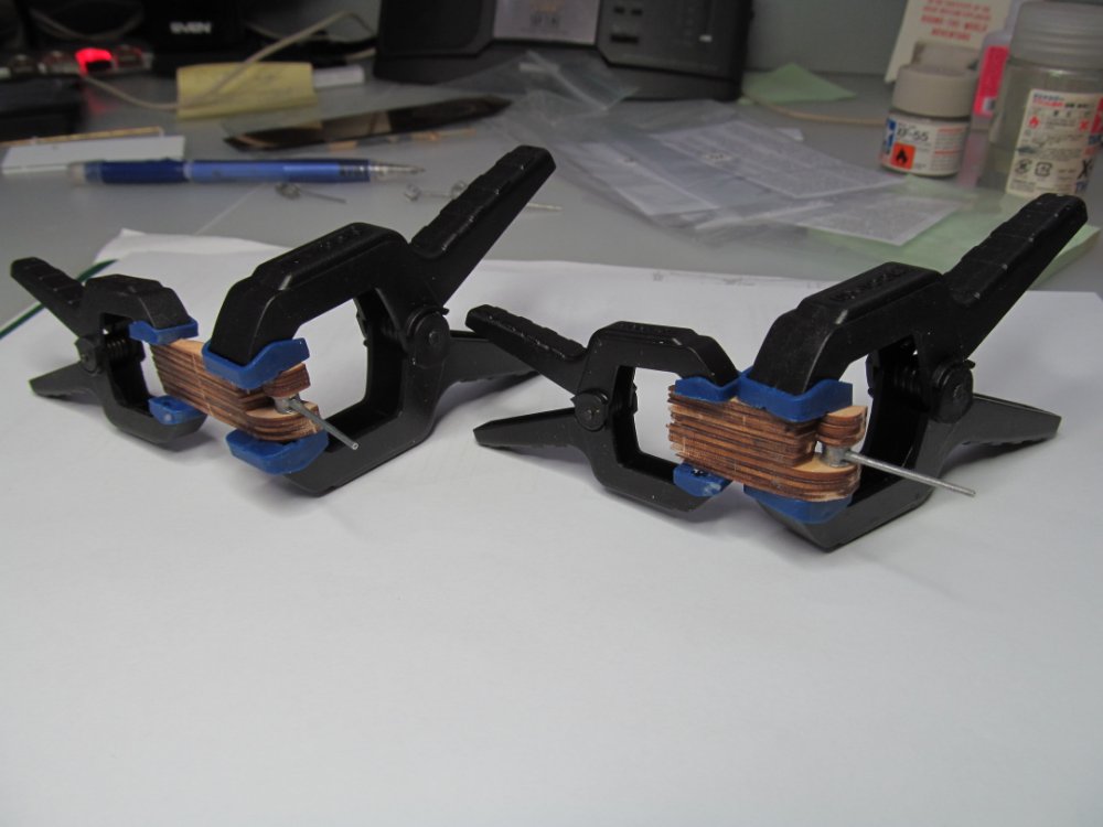 При сплачивании слоёв, оси орудий упираются в предыдущие слои фанеры. Я засверливал отверстия под оси орудий, чтобы их немного углубить.