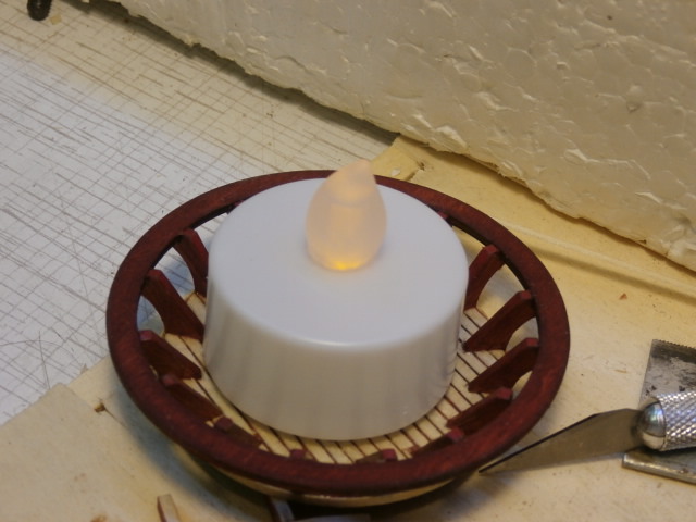 В моём понимании корабельные фонари выполняли функцию связи в совместном плавании двух и более кораблей. Самое страшное было потеряться во мраке ночи в совместном плавании всей эскадры. Моряки загодя обговаривали количество и место фонарей на корабле. В начале Фонари не имели своего штатного места. Со временем отрабатывала жизнь оптимальные варианты. Для иллюминации своей модели я решил воспользоваться не дорогими китайскими фонариками изготовленными в виде настольной свечи, для новогоднего стола. Среднее фото это рекламный текст на упаковке этого сувенира. Сувенир очень прост! Пластиковый корпус , таблетка - батарейка на 3 вольта и микро выключатель, сам светодиод в котором микрочип мерцания.