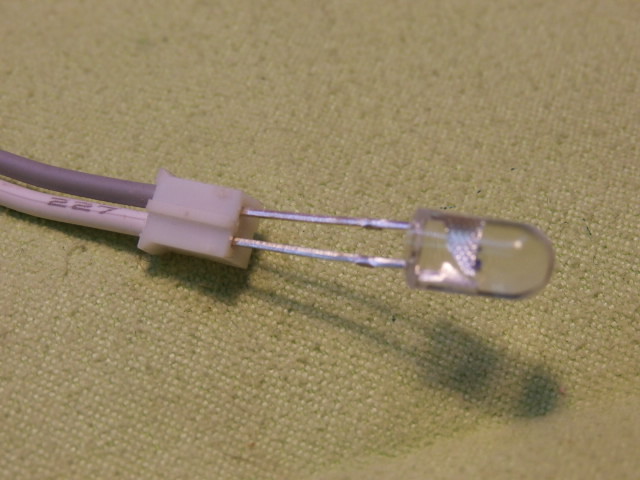 В прошлых постах я уже писал о том, что запланировал на (Фок и Грот мачтах) модели установить два фонаря на нижних марсовых площадках. Я собирался установить в "Вороньем гнезде" металлические фонарики от декоративных брелоков. Но при нашем масштабе сооружать действующий фонарь сложно. Слишком мало места внутри брелока. Не стал я испытывать судьбу и просверлив два 0,5 мм отверстия в планшире "Вороньего гнезда" пропустив выводы светодиода и наклеив все, в том числе выводы и корпус светодиода на секундный клей я получил такого рода имитацию корабельного фонаря. Должен сказать, что корпус светодиода миниатюрен (5 Х 6 мм.) Свет от него очень слаб. (Он работает как заженная свеча то потухая, то ярко вспыхивая желтым светом.) В окружении парусов и такелажа, думаю его форма не будет уж сильно заметная для зрителей и не так критична! Оба вывода я наклеил с обоих сторон кормовой стойки планширя на секундный клей, а затем нанес шпатлевку. В окончательном варианте стойку вместе с выводами я закрашу под цвет самого гнезда. Покупать или сооружать корабельные фонари на такой миниатюрной площадке , по моему убеждению будет грубо,( на уровне детской игрушечной кареты.)