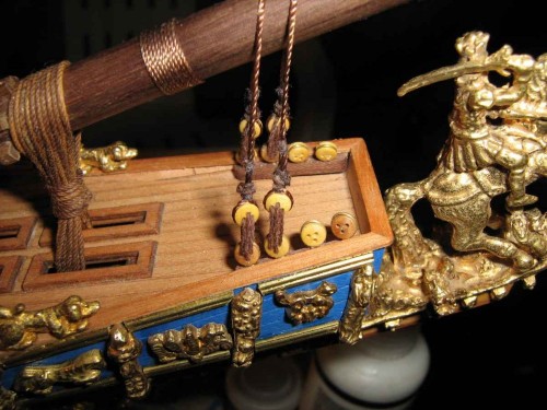 Глубоко убежден, что настоящим украшением модели старинного корабля является обустройство юферсов на мачтах вант и выбленок мачт корабля. Ровные ряды которых украшают модель корабля Увы, наверное создатели модели поспешили, или просто не обратили на это внимание и в итоге получили вот такой вариант: (См. фото)