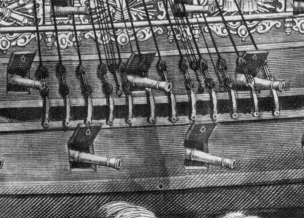 Понятно, что фанерные, предлагаемые ДеА (ПОЗОР - не иначе!) сразу пойдут в помойку, но вот в чем сомневаюсь: круглые ли они были? Примерно до 1650 года юферсы ведь были треугольными, следовательно на момент строительства Соверена они не могли быть круглыми. Или я не прав?