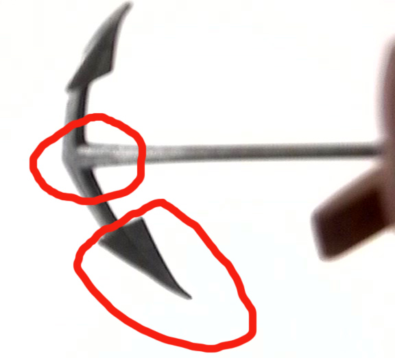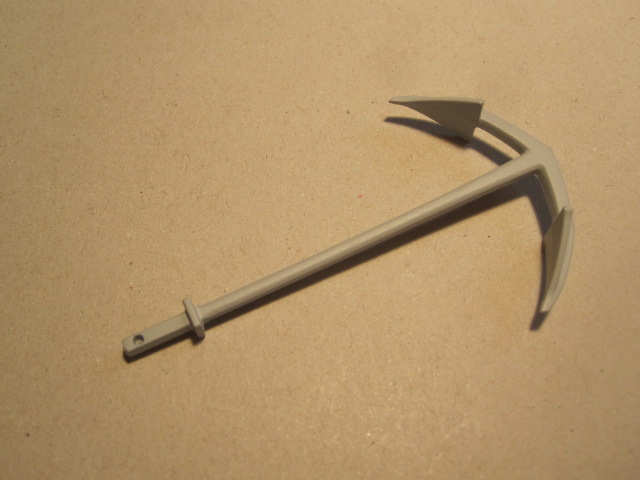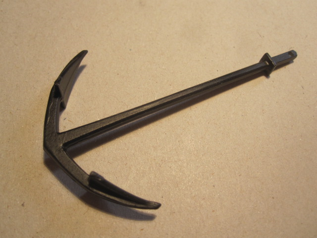 Для начала, якорь у нас не правильный в корне. То ли веретено короткое, то ли рог с лапами длинный. В придачу тонкий слишком. Мало того, у нас их будет не менее четырёх и разных, а вот что положат не известно и будут ли, они разными. Самый большой якорь на нашем корабле должен быть более семи см., что означает, веретено короткое, или якорь не самый большой. Уверен, остальные будут такими же.