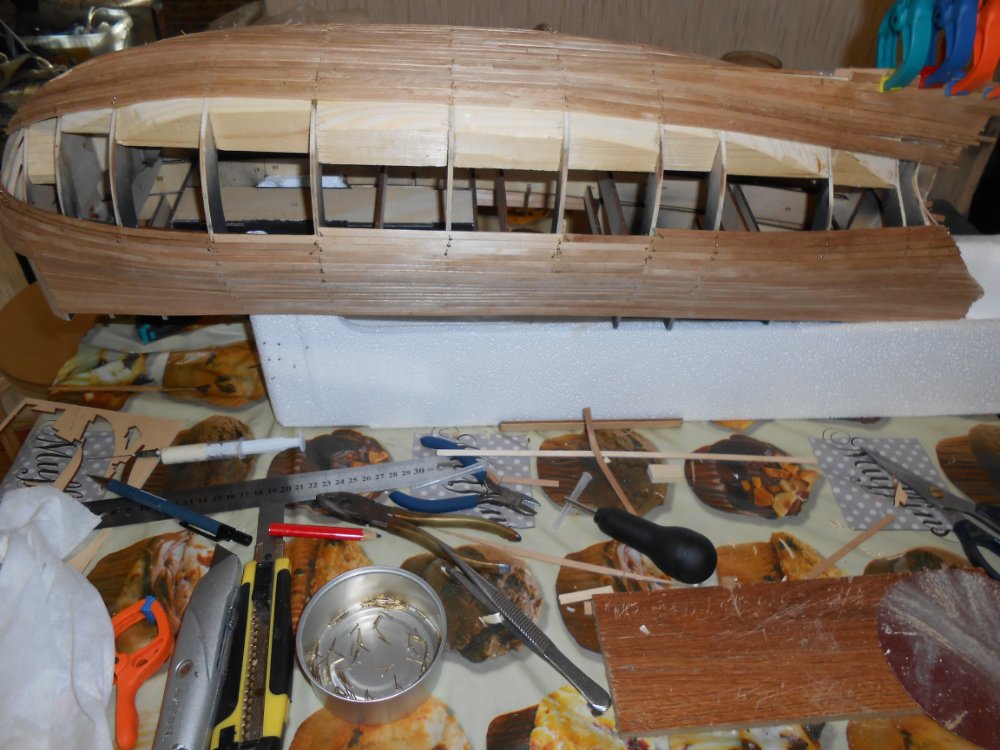 Согласен. После того как набор шпангоутов выставлен, проклеен, примерены палубы, начата обшивка стапель практически уже не нужен. Ведь силовой набор выставлен. Главное на батарею или на солнце его не ставить.