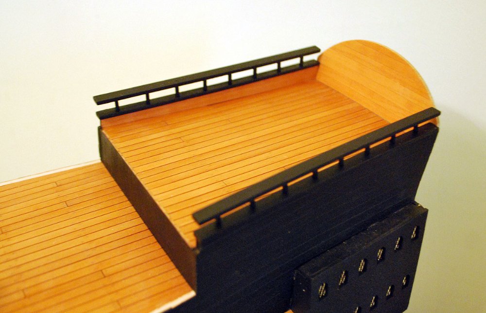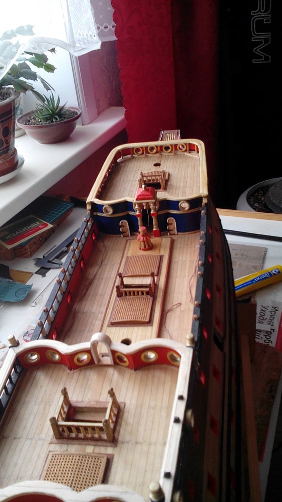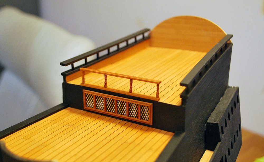 Перила к палубе пока клеить не стал, легко снести неосторожным движением.