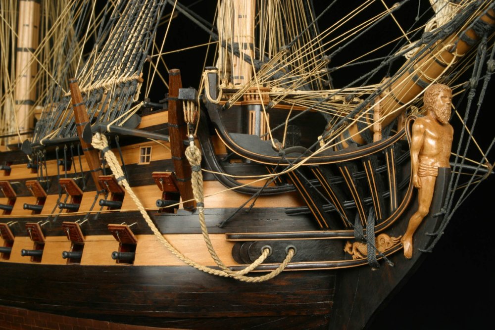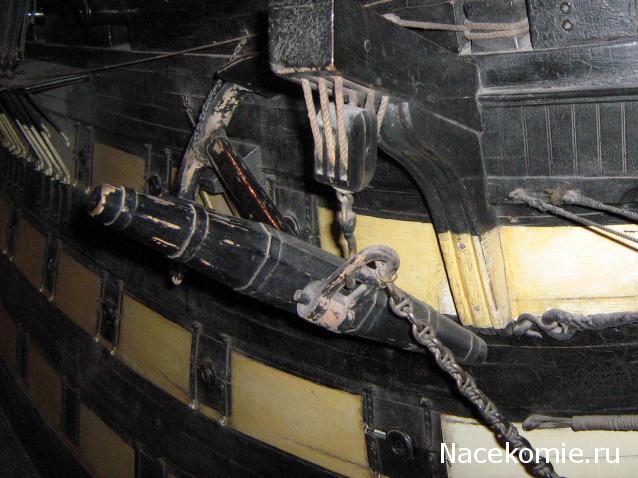 Высказываю свое мнение. Хотя мне когда то нагорело за него от Фомина К.В. - судомоделиста из Питера. Ну, во - первых подвешивать крышки портов на бархоуты смешно и нелепо. Бархоуты слишком далеко выходят за плоскость борта корабля. По идее крышка должна в закрытом состоянии быть на одной плоскости с окружающем её бортом корабля.