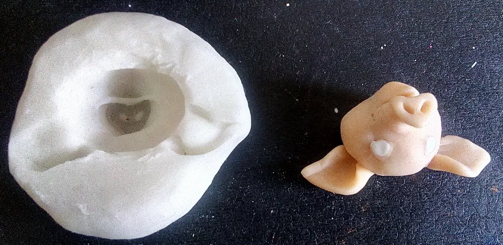 На фото форма и изделие. Это не совсем слепок. Оно доработано - убраны дефекты, добавлены некоторые элементы, доработаны нос и уши. Но здесь и объем приличный и форма изделия сложная