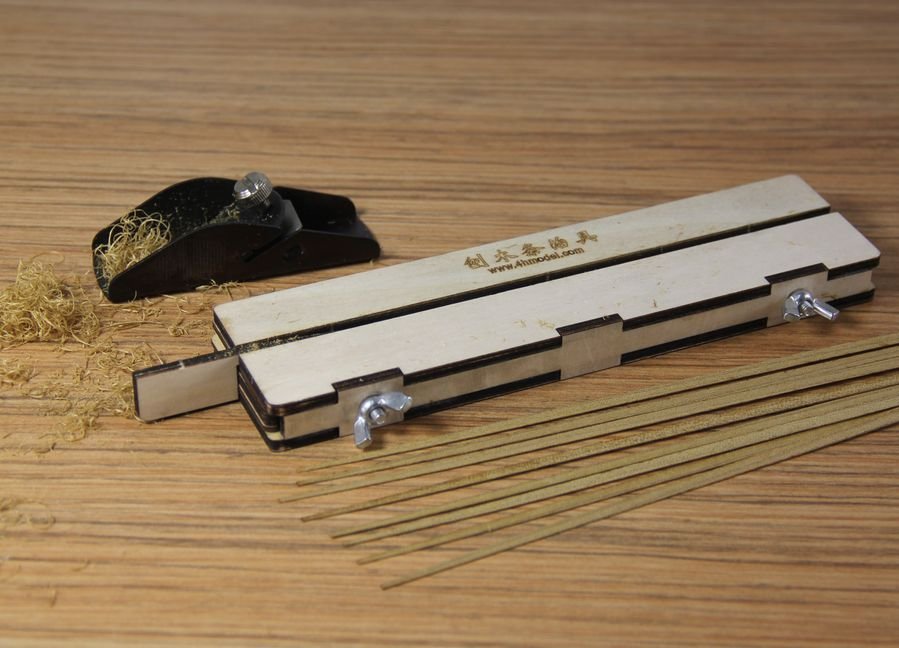 Комплект по системе "Сделай сам!" В наборе идут нарезанные лазером фанерные детали и миниатюрный рубаночек. Есть и схема сборки изделия , но правда на китайском языке. Я подробно выкладывал с фотографиями все этапы сборки его (устройства) и фото самих деталей. Но где! Извините не помню. Где на первой половине моей веточки: "Повелитель Морей от Кервы." Устройство облегчает жизнь судомоделиста, но есть у него один большой НО! Дело в том что бы им пользоваться его детали нужно склеить по схеме. А загвоздка в том, что детали нарезаны очень точно лазером но из низкосортной рыхлой фанеры. Как бы вы не осторожно пользовались век устройства не долог. Я вышел из этого порочного круга тем, что на рынке у торгашей выклянчил ящик из под фруктов сколоченный из тонких дощечек абрикоса! Древесина темная, слои жилистые и очень твердые! Вот из этой древесины я и изготовил своё устройство. Должен добавить, что микрорубанок, который идет с этим комплектом у меня оказался то же очень низкого качества. Удачи Вам!