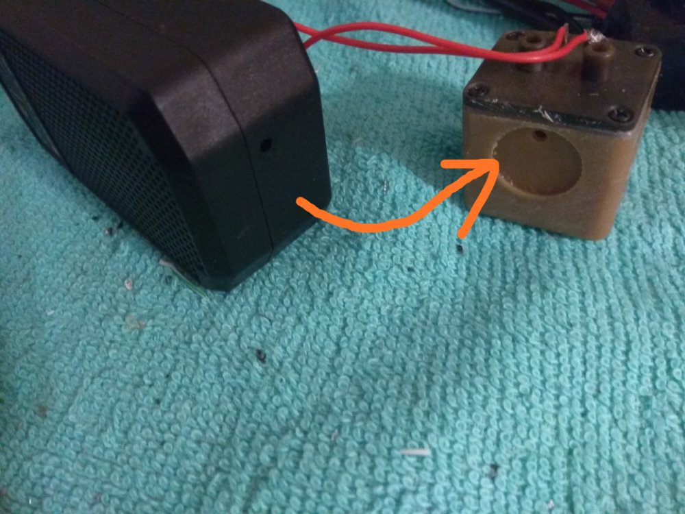 Так как, генератор дыма очень громоздкий и орёт как резаный))) я отпилил сам испаритель чтобы присобачить его к колонке которая будет озвучивать работу двигателя, тем самым выполняя роль помпы испарителя.