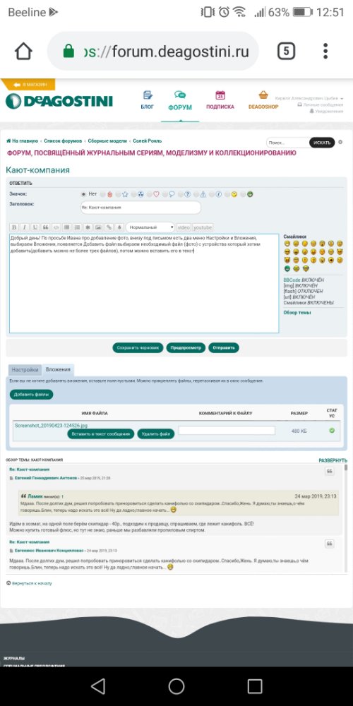 +100500,тем более,что Бисмарк к ДеАгостини отношения не имеетCrazy Ivan писал(а): ↑24 мар 2019, 15:36Посмотрите на насекомых в "купи-продай", ну или на авито (не реклама)...там реальнее найтиВладислав Владимирович Кузнецов писал(а): ↑23 мар 2019, 19:22 Здраствуйте.Вопрос а Бисмарк кто строил? У мення не хватает журналов.Может у ково есть в запасе?