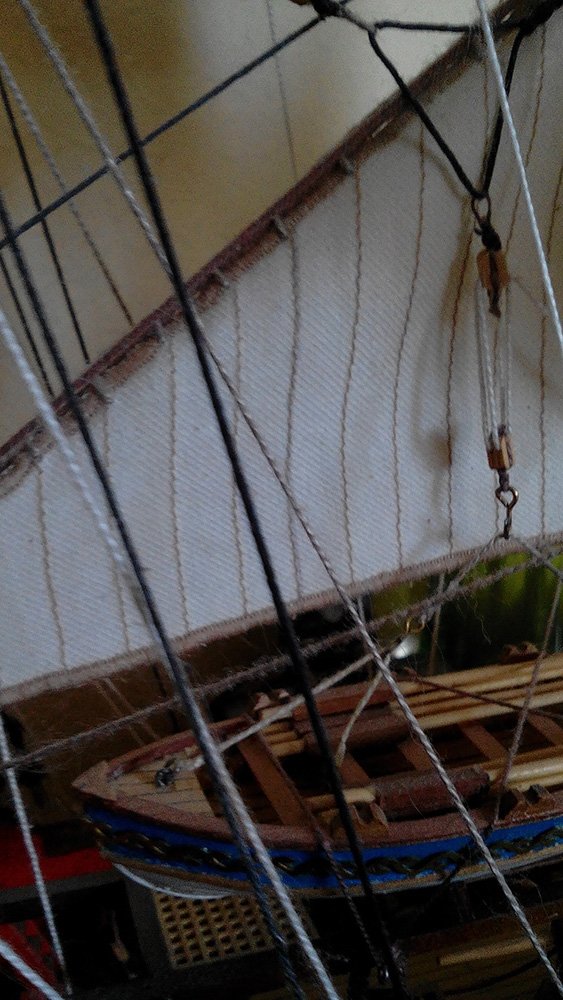 Есть такая сеть маг-ов "Циркуль" там я нашёл наборы для рукоделия стоимостью 72 р., в кот., среди прочих металлич. побрякушек есть медная цепь длинной около 1 м. со звеном примерно 2х2.2 мм, самое то для нашего корабля. Цепь кот. прислал ДеА слишком мелкая, не смотрится она в масштабах СоС. Наверное такие наборы есть и в Леонардо. Правда цепь эта тоже непрочная работать с ней надо осторожно и конструкцию юферс-руслень-цепной вант-путенс построить так, чтобы нагрузка от натяжения вантов ложилась на руслень, а не на цепь вант-путенса. Вот что получилось у меняИЛЬЯ ИВАНОВ писал(а): ↑31 май 2019, 21:50