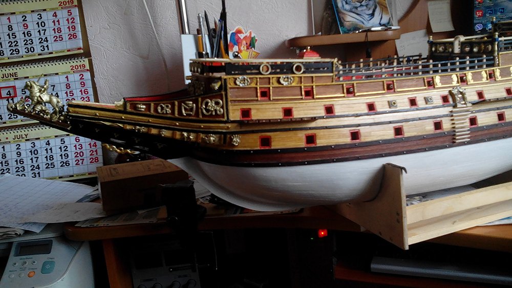 Магазины называются "Циркуль" а не акварель, эти маг-ны торгуют канцтоварами, товарами для творчества, дешёвой бижутерией и т.п. Есть ещё маг-ны Леонардо, у них более разнообразный для творчества товар. По поводу плоского декора-сам в печали, поиск вариантов придать объём не увенчался, либо слишком сложно, либо слишком дорого, в связи с их количеством и разнообразием, тем более на подходе ещё много вариантов плоского декора.Вобщем смирился. Фото бортов прилагаю, весь корабль в кадр не входит, либо получается мелким, снял отдельно корму и носовую часть.Декор далеко ещё не весь установлен. Качество снимков приходится снижать в связи с ограничениями форума, так что приношу свои извинения.ИЛЬЯ ИВАНОВ писал(а): ↑04 июн 2019, 14:14 Спасибо за подсказку! Акварель -таких магазинов нет но с нитками для рукоделия есть и идея понятная -будем искать.