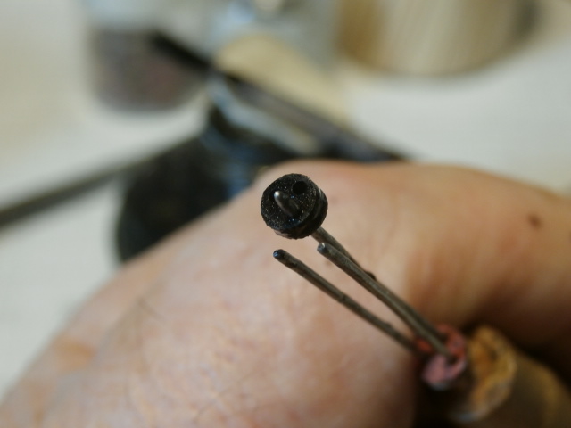 И так. Обработанный по краям в виде желобка тонким надфилем юферс пропитываем цианакрилатным (секундным) клеем. Даём время на просушку клея. За тем окрашиваем деталь китайской тушью ну а затем по верх покрываем слоем шеллака (политуры). Проверял я окраску юферса акриловой черной краской, но за счет грунтовки и краски покрытие получалось толстым аляповатым - мне не понравилось... Удачи всем и конечно Здоровья!