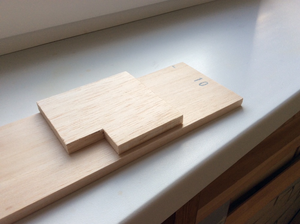 Первые шпангоуты склевал просто: лежа на ровной плоскости, на бумаге. Ставились на килевую рамку со стапелем и упором, строго под 90. Начал забивать шпации бальзой, а размеры брусочков все равно гуляют от 1 до 2х мм
