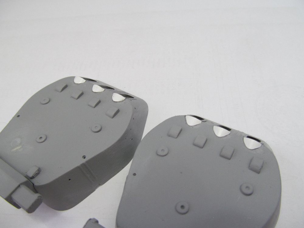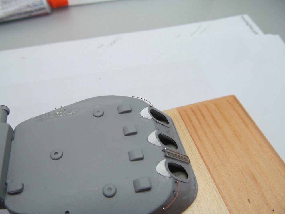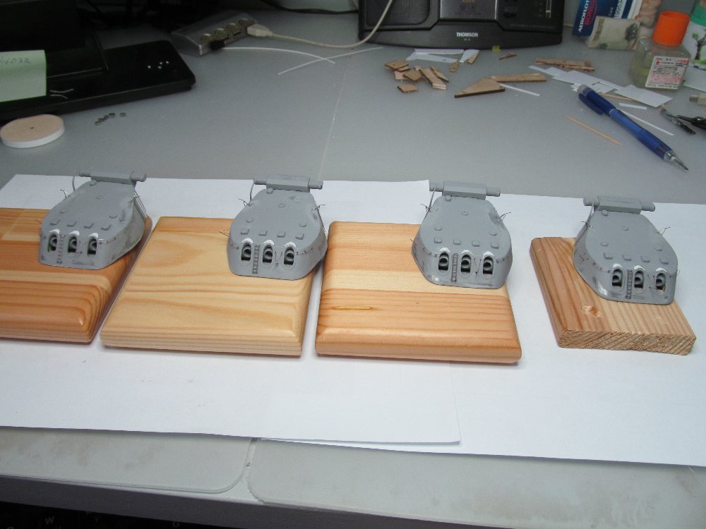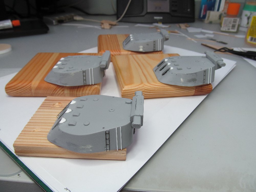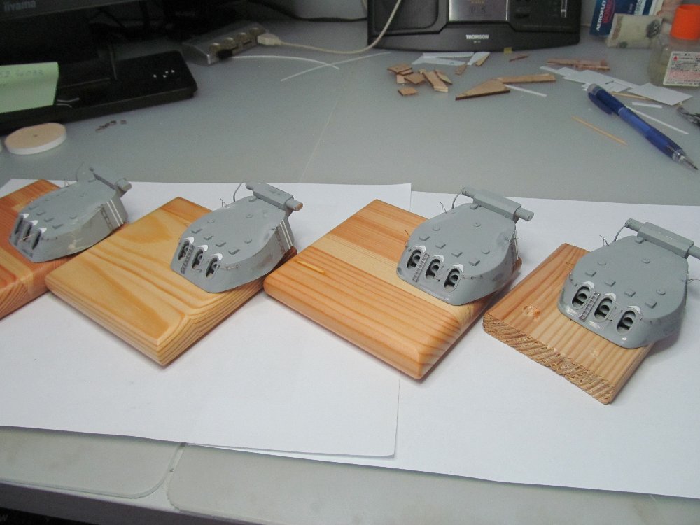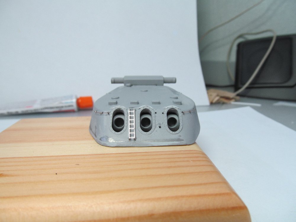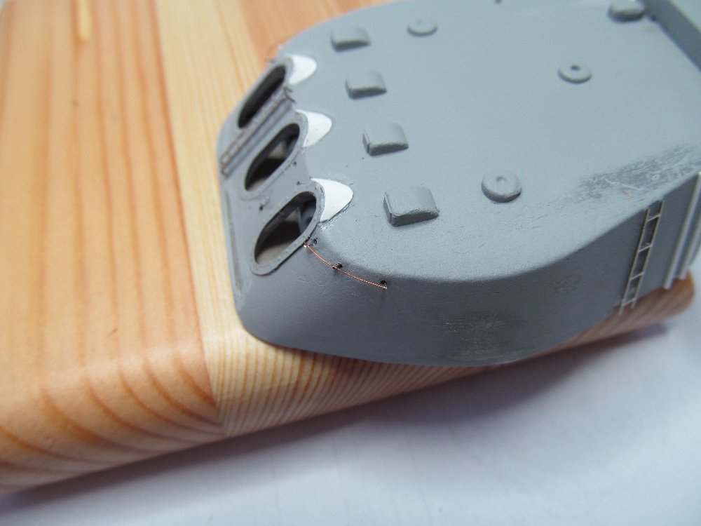 Понял, что наплывы над амбразурами башен ГК из шпаклёвки никуда не годятся.... и начал делать их из пластика.