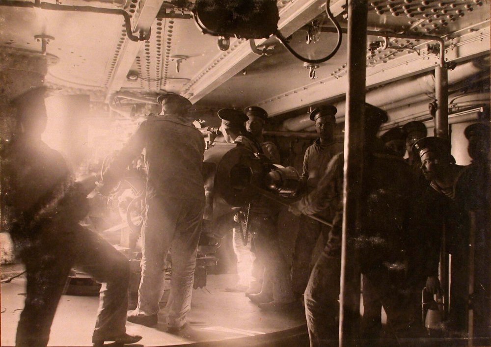 Спасибо за фото. Очень интересное фото. В моей книге о танках есть рисунок, где Английский танкист ведет огонь из пулемета. Лицо стрелка закрыто кольчужной маской для защиты от мелких осколков брони внутри танка.Такими масками снабжались танкисты первой мировой войны. Голь на выдумку хитра, видно и комендоры российских кораблей себя защищали в какой то степени подручными средствами развешивая плотные занавеси в опасных от осколков у себя направлениях. Вы правы , на счет барбетов Г.К. Я нечаянно наткнулся на несоответствие в миллиметрах. Это сразу бросается в глазах Башни ГК кажутся как бы приплющеными к верхней палубе! Я интересовался о внутреннем обустройстве казематов противоминной артиллерии как то уж очень не серьезно торчит ствол орудия из округлого противоосколочного щита в нашем проекте ( я пишу о каземате )Не верится что это серьёзное морское орудие и после ствола у него есть еще и казенная часть пушки. Мне кажется, нужно увеличить диаметр самого противоосколочного щита орудия...