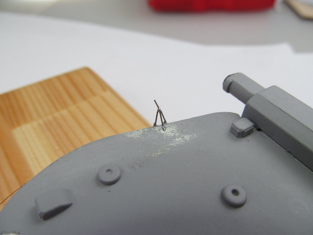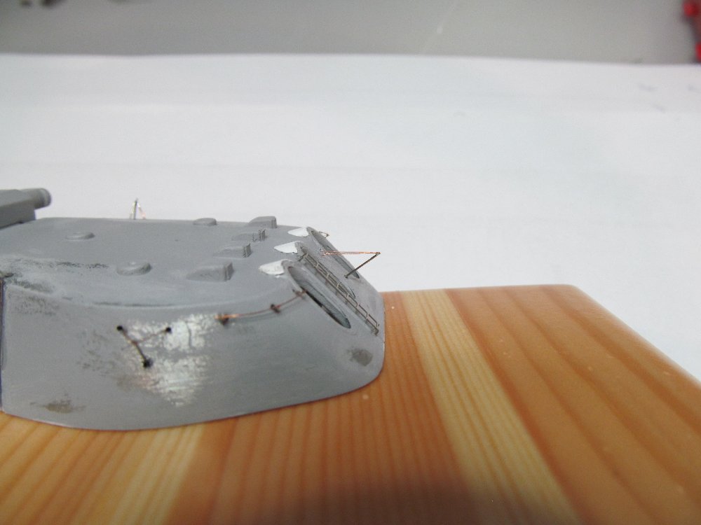 Из старых "Севастопольских" закромов (масштаба 1/350) для крана подачи боеприпасов на крышу башни великолепно подошла шлюпбалка.