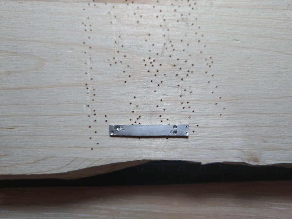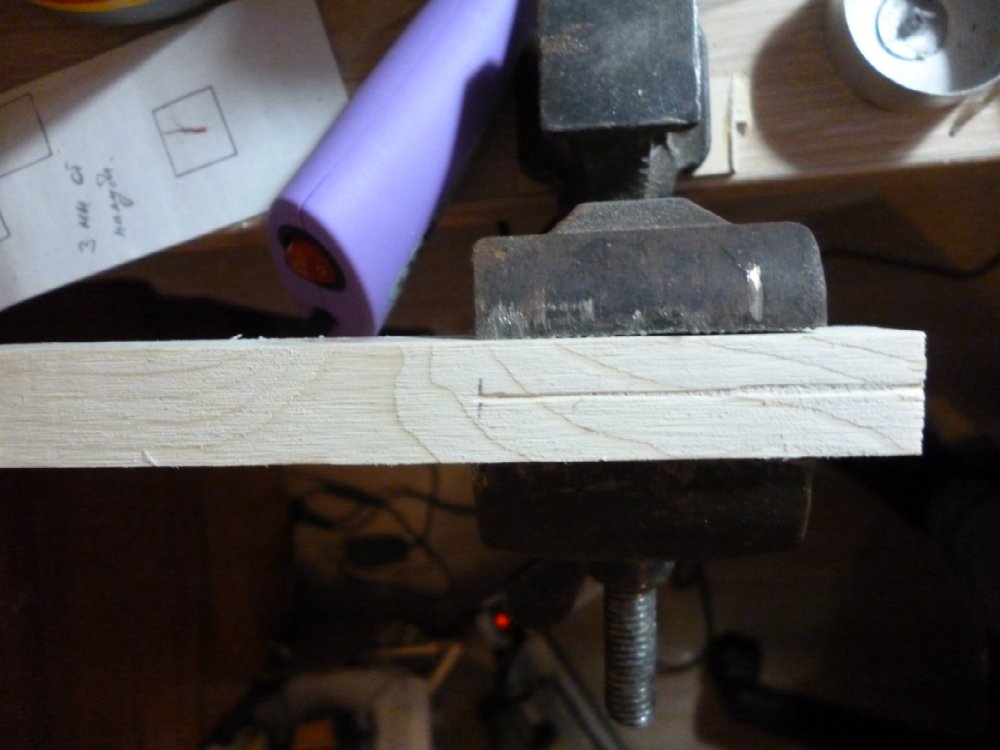 После сверления палуб делаем нагели. В брусочке сделана небольшая канавка