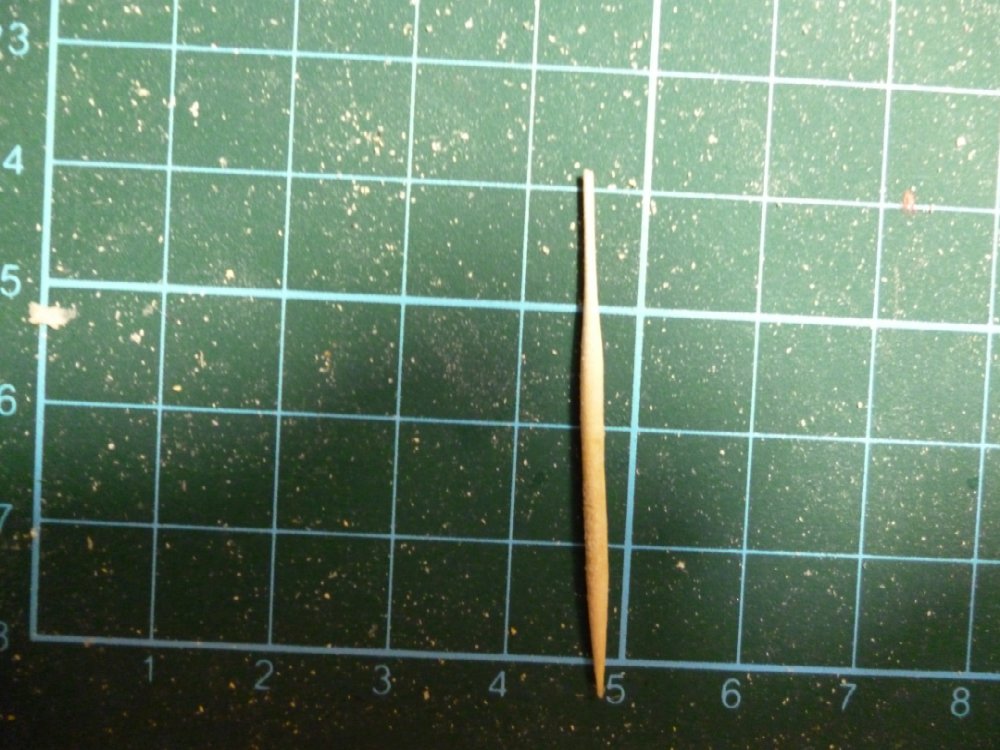 Зажимаем зубочистку в бормашинку и, прижав сверху наждачкой к канавке, обрабатываем до нужного диаметра.