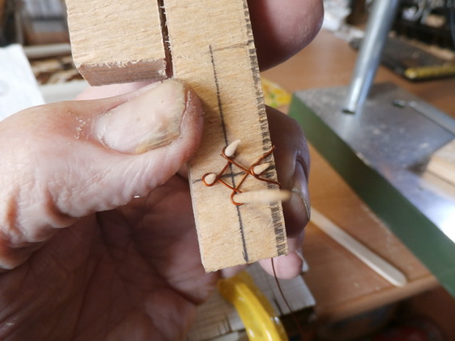 Сергей Николаевич, а не лучше, ли, заменить зубочистки гвоздями, или стальной проволокой. Думаю, кондуктор получится надёжней, скажем точней, не будет зависеть от мягкой древесины.
