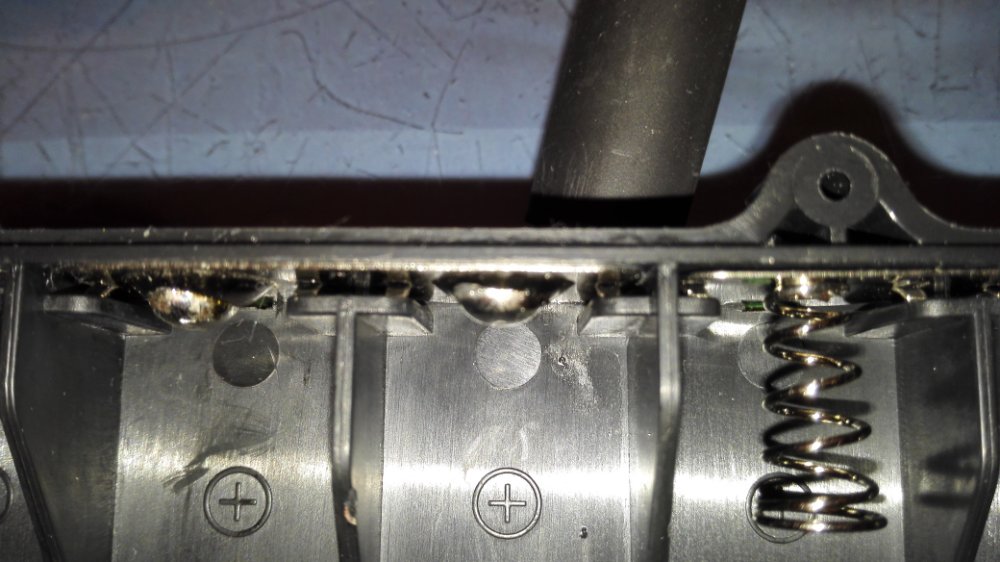 При измерение на противоположных выводах отсека(напрямую на контактных площадках) напряжение имеется (не обращайте внимание на значение, аккумуляторы не заряжались) При измерении под крышкой результат тот же Но при этом, напряжение на разъемах отсутствует