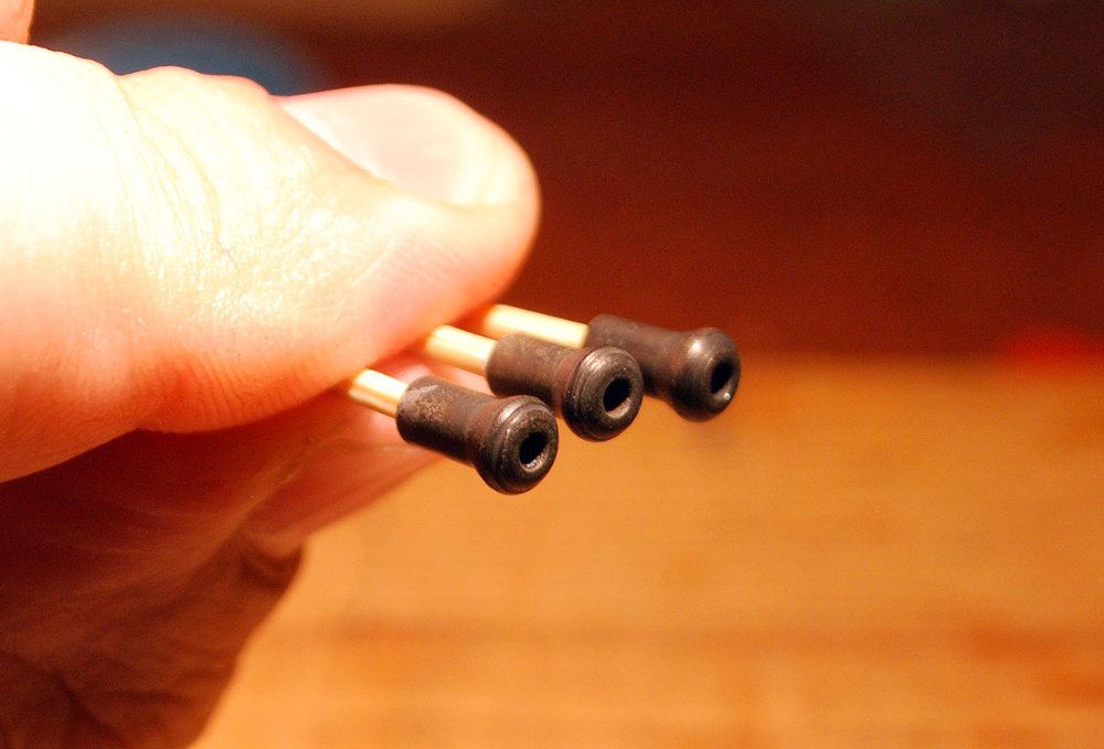 Попробуем исправить стволы из журнала. Для начала попробовал залить дуло черной краской - не то. Высверлил еще пару миллиметров и зачернил Brass black, уже неплохо. Зажал в Дремель и проточил надфилем буртик на дульном срезе, на фото один ствол показан без буртика. Пока остановился, надо с длиной что-то делать.