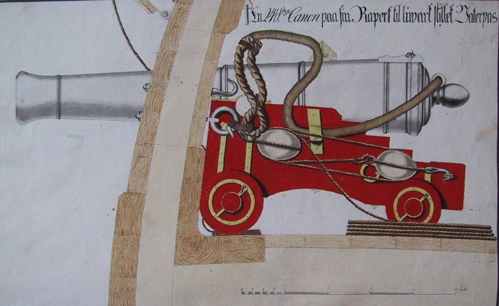 На всех изображениях положение одно и оно логично - брюк должен легко проходить в направлении движения лафета при откате через большое вертикальное кольцо, гаки подкатных талей талей удобнее цеплять на горизонтальное кольцо.