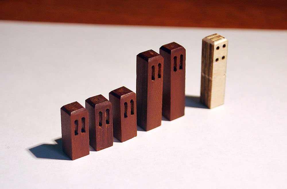 С первого взгляда на фанерные детали для кнехтов в 112 номере было понятно, что по журналу получится не музейное качество. Фанерные полосатые торцы сильно удешевляют внешний вид модели. Первая мысль была наглухо закрасить в черный или темно-коричневый, так я сделал в патворке 12 Апостолов. Иностранная версия Повелителя предлагала вырезать кнехты и крамболы из рейки, трудоемко, но без фанеры. Нашел у себя рейку подходящего сечения 6x6 мм и изготовил самостоятельно эти детали. Между отверстиями, как и предлагалось в иностранной сборке, надо прорезать канавки для имитации шкивов. После того как установил на место все детали, заметил, что в иностранной версии на кнехтах 6 отверстий, у нас 4, опять упрощение.