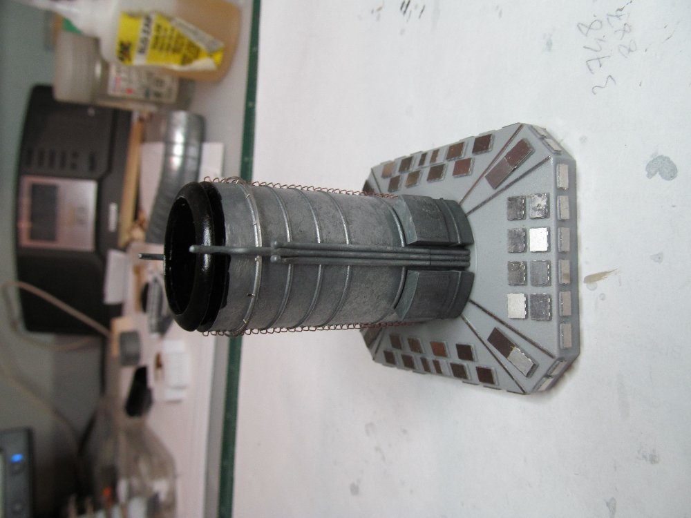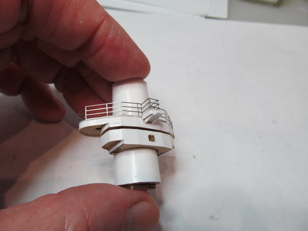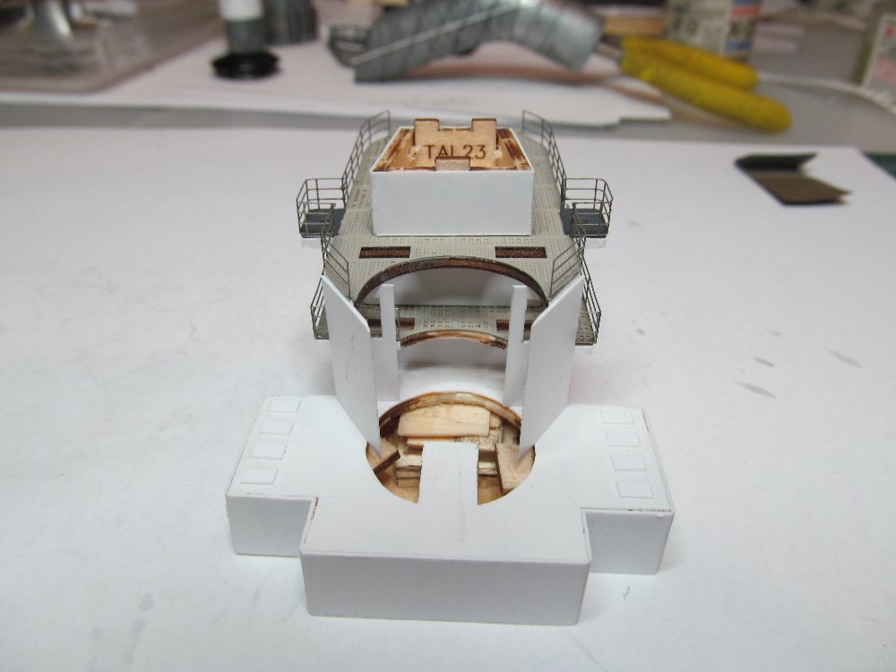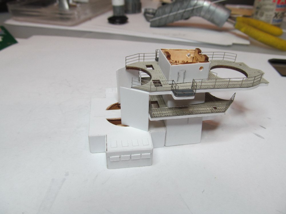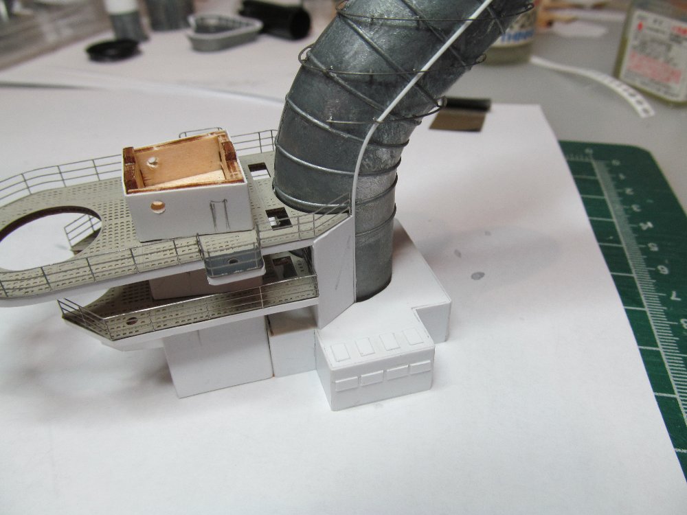 Продолжаю подгонять площадки ярусов передней надстройки под облагораживаемую переднюю дымовую трубу.