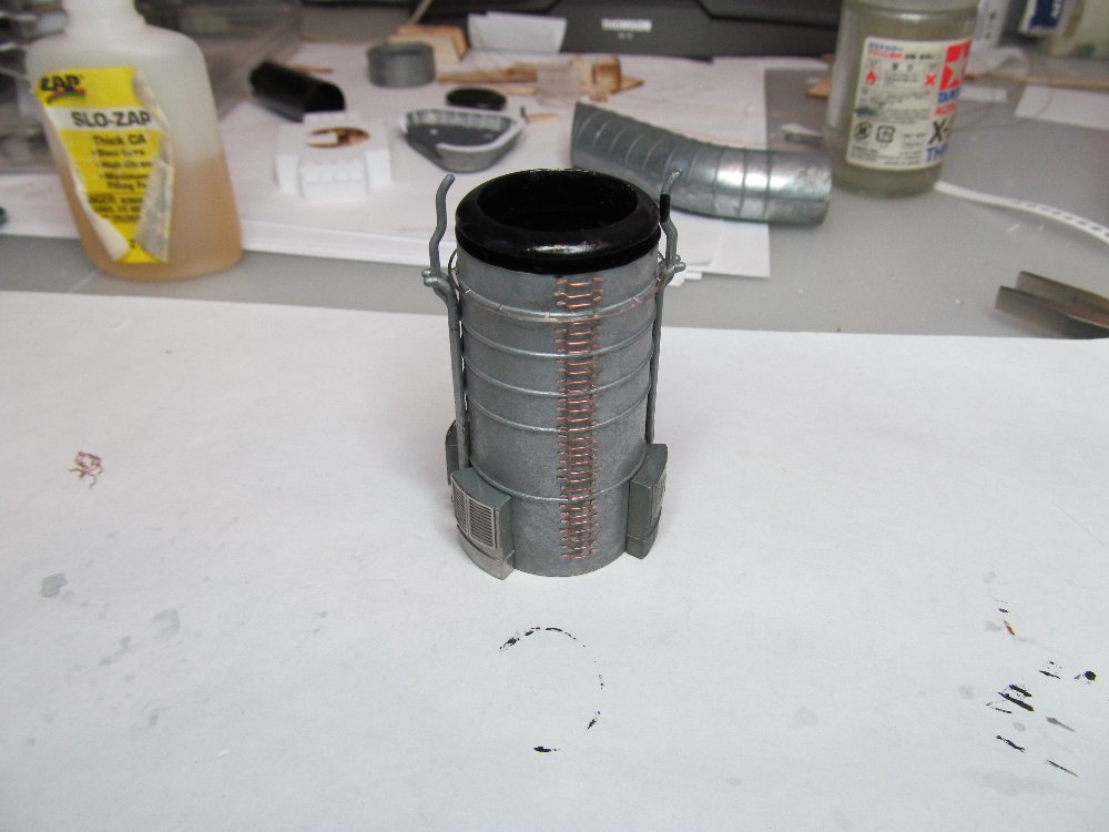 Занялся оформлением передней дымовой трубы и воздухозаборниками вентиляционных шахт.