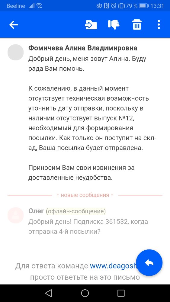 Вы вообще читали условия подписки? Почитайте внимательно полностью. Особое внимание уделите п. 2.3.1.Денис Владимирович Иванов писал(а): ↑17 ноя 2019, 07:20 Наконец-то письмо пришло, что посылку отправили!