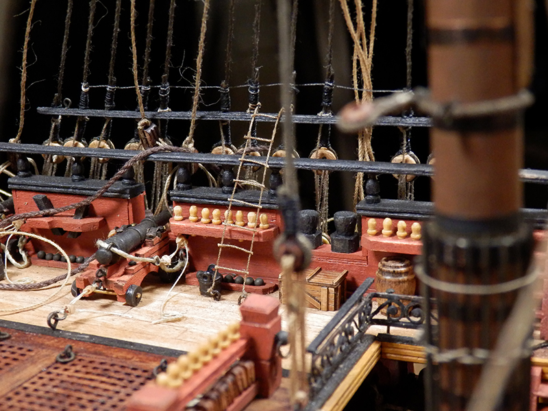 достроил мачты и бушприт. начну ставить пушки. на черные перегородки двери поставлю \имитацию\ палубы какие то голые получаются может пушки скрасят\заполнят