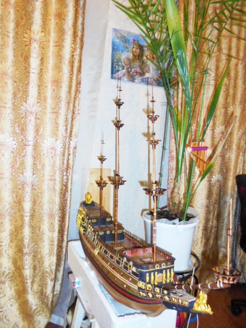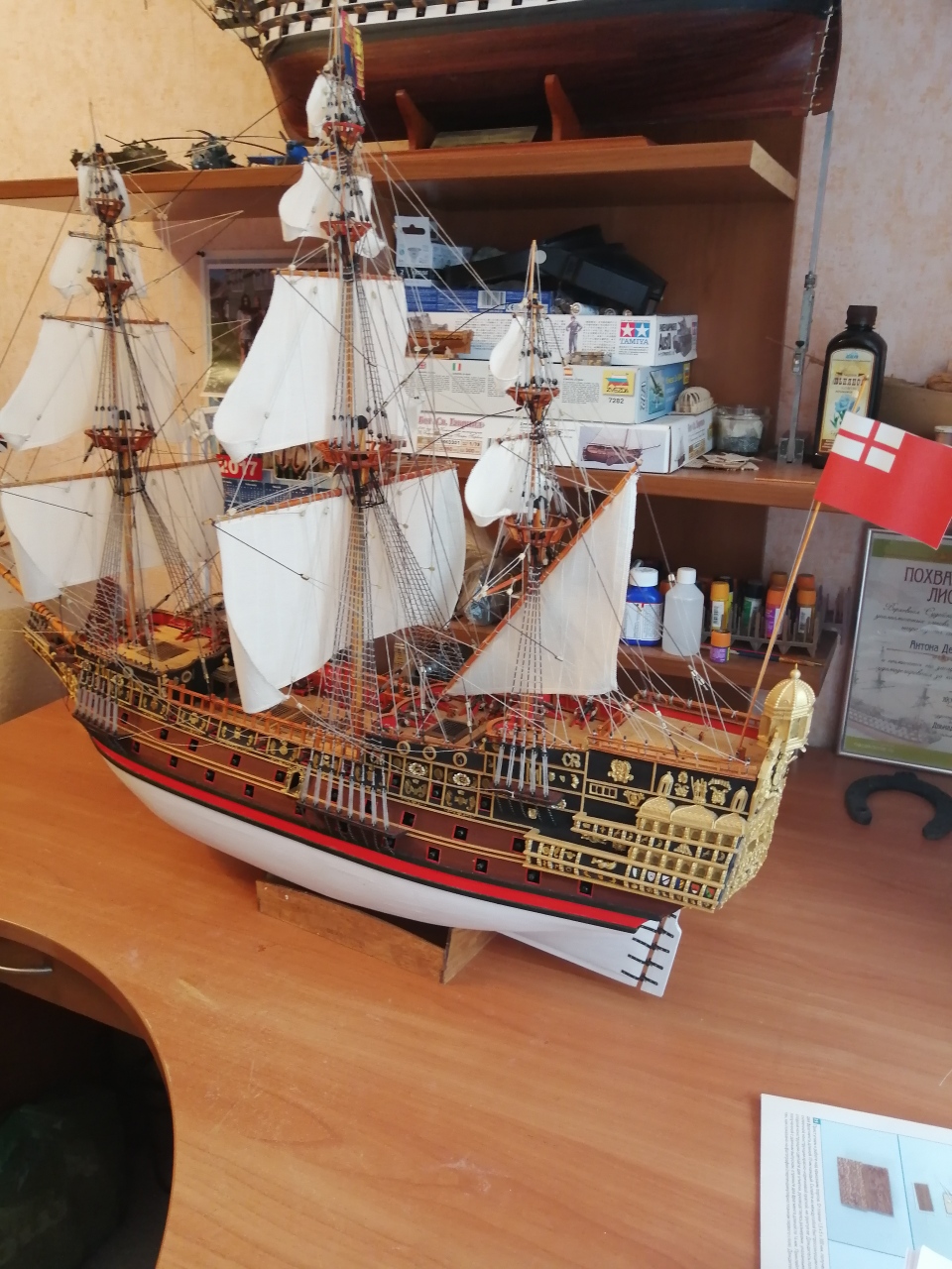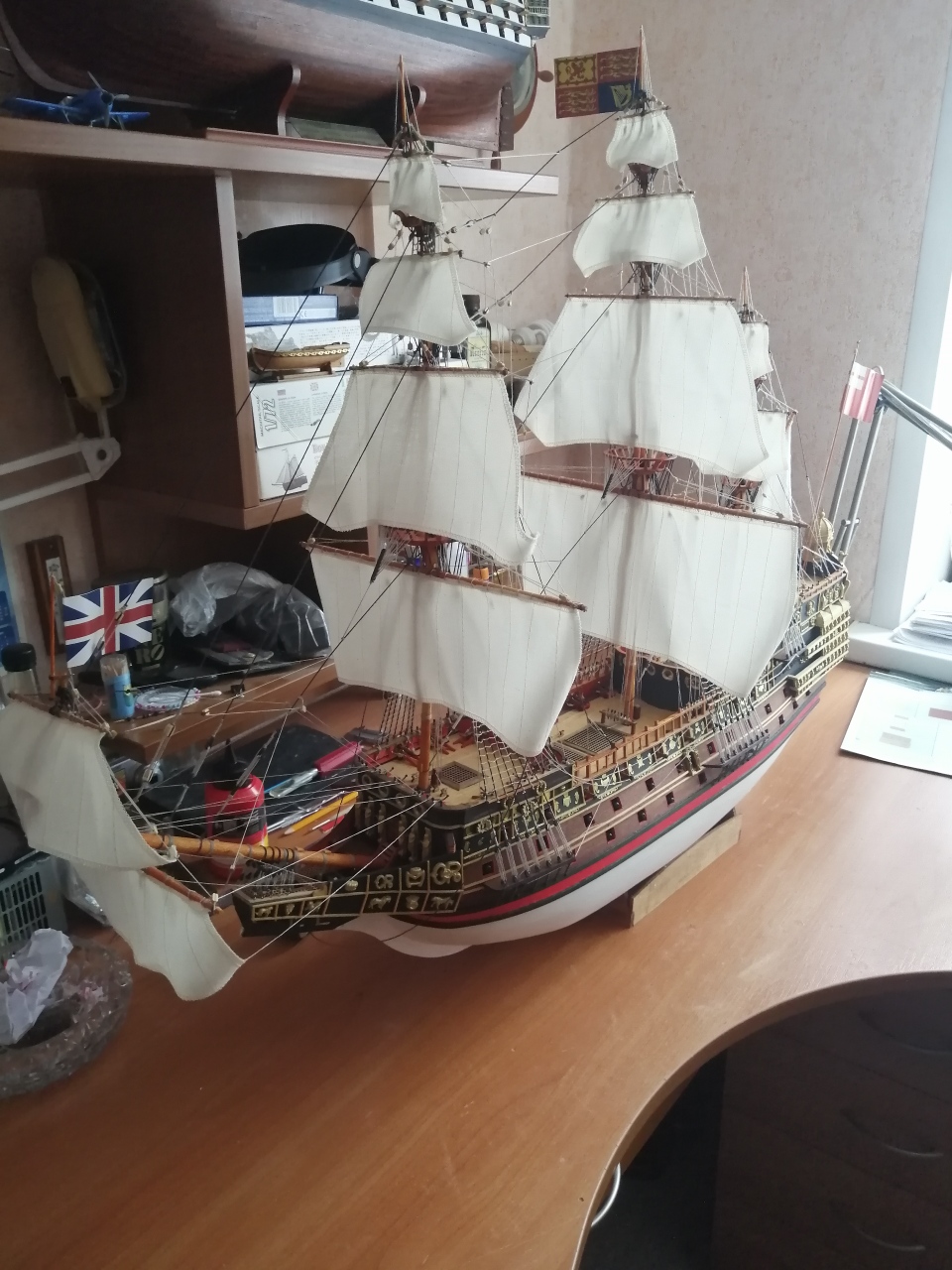 Уважаемые коллеги, вот мои небольшие продвижения в строительстве повелителя морей, за окраску палубного настигла скажу сразу - накосячил малость, получился грязно-сосновый цвет, переделывать не стал, на будущее учту, в остальном что-то получается, что-то не очень, но будем работать над качеством, всем удачной постройки.