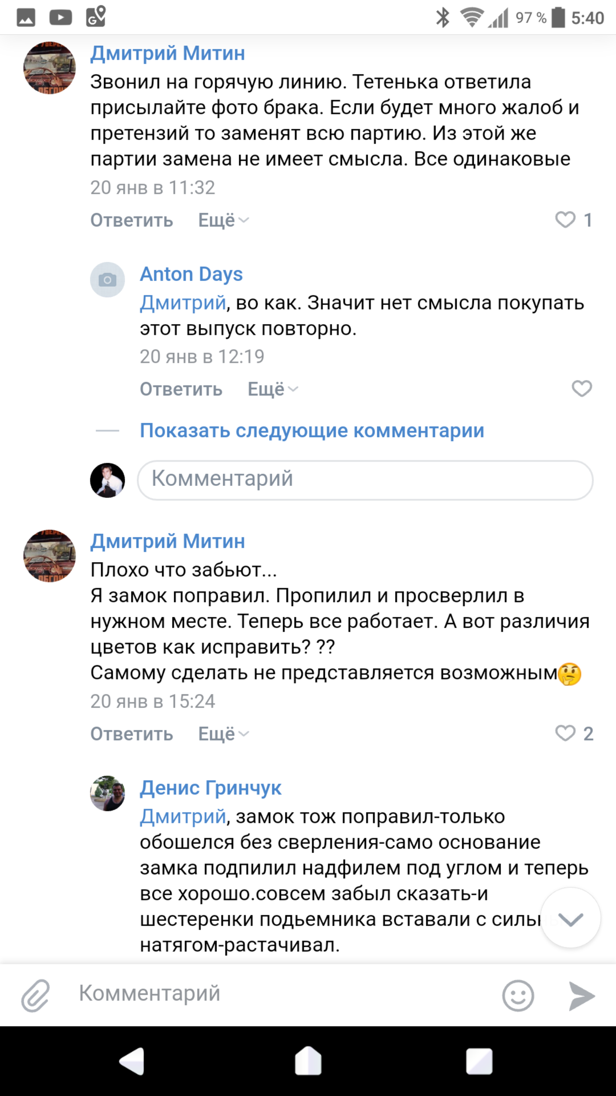 На неделе был в редакции, мне ответили что замена будет обязательно. Сейчас они собирают статистику сколько деталей не попали в цвет, сколько уже успело пойти в продажу и т.п. Точных сроков замены мне не назвали, потому как у китайцев каникулы, вирусы и прочие осложнения, из-за этого будет задерживаться производство и транспортировка деталей.