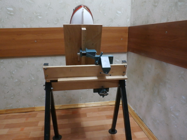 Последнее время вожусь с самодельным стапелем для своей модели. Перебрал множество вариантов. Начал со старой табуретки. Если перевернуть табуретку к кверху ножками , если обклеить внутри пенопластом, то вполне можно работать с моделью, носовой и кормовой оконечностями модели...Нет, мне не подходит этот вариант, хотя я в него угрохал два дня! Нет всё же старый вариант лучше! Не знаю, кто придумал шаровые тиски?! Но он гений, я уверен в этом! Не пожалел бы Нобелевской премии. Как все просто, шаровой шарнир позволяет тиски выставлять под любым рабочим углом."Дайте мне точку опоры и я переверну мир!" говаривал в своё время Архимед. Тиски я купил очень давно и они были прикреплены к рабочему столу. Верой и правдой мне служили. У них есть не большое "НО". Их нужно настраивать при работе на пару. В остальное же время они просто банально мешаются. Снять - занимают много места, которого мне так не хватает! Остаётся просто не замечать их, до нужного момента. Дома , в квартире я пользуюсь верстачком от китайских друзей, он износился и пора бы выкинуть на свалку и тут меня просветило "а что если соединить раму и шаровые тиски в один агрегат?!!! Действительно Эврика! Сразу забыл про старые табуретки!