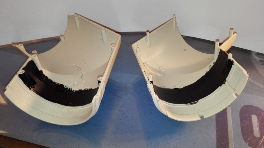 Я наклеил комплектные полоски и еще дополнительно покрасил черным "густо"Олег Маларев писал(а): ↑02 янв 2020, 14:01В принципе, покраска внутренней стороны коридора - один из способов доработки модели. Вкладки достаточно хорошо блокируют свет от диодов, но в районе первой пары монтажных штифтов (возле переборки, где мы вырезаем уголки) свет будет просматриваться. Их точно можно густо прокрасить в нижней части, прилегающей к внутренней поверхности рукава (штифты полностью красить не рекомендую, иначе будет сложно вставить их в гнезда). Что касается остальной части рукава, то ее тоже можно покрасить изнутри где-то до поворота. Но с этим можно повременить и дождаться этапа монтажа интерьера коридора, который будет просматриваться через съемную панель, чтобы понять, до каких пор имеет смысл красить.