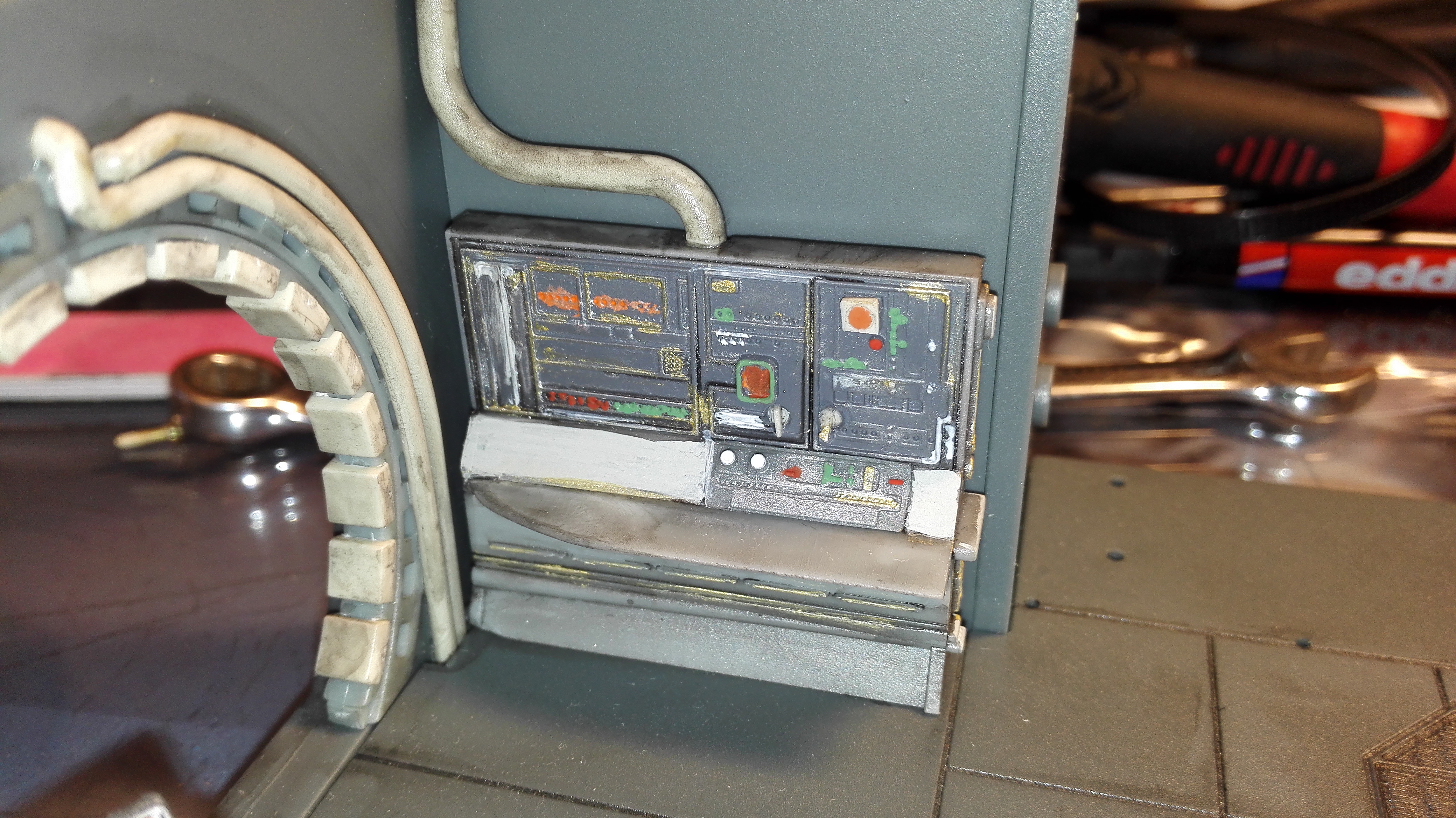 В принципе, покраска внутренней стороны коридора - один из способов доработки модели. Вкладки достаточно хорошо блокируют свет от диодов, но в районе первой пары монтажных штифтов (возле переборки, где мы вырезаем уголки) свет будет просматриваться. Их точно можно густо прокрасить в нижней части, прилегающей к внутренней поверхности рукава (штифты полностью красить не рекомендую, иначе будет сложно вставить их в гнезда). Что касается остальной части рукава, то ее тоже можно покрасить изнутри где-то до поворота. Но с этим можно повременить и дождаться этапа монтажа интерьера коридора, который будет просматриваться через съемную панель, чтобы понять, до каких пор имеет смысл красить.