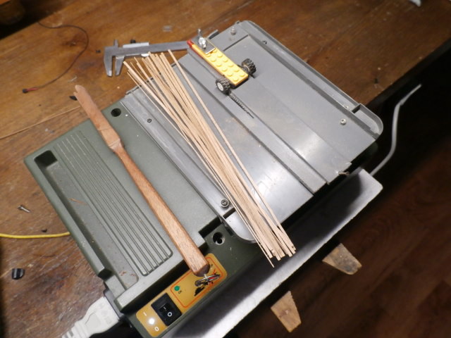 У меня строительство модели продолжается. Пока обустраиваю правый борт моего корабля. Нижние этажи, артиллерийские деки: Гон-дек и мидель-дек обшиты 3 мм чистовыми планками ореха, перешел на третий, верхний этаж корпуса модели - Опер-дек. У меня в запасе накопилось достаточное количество различных по ширине планок из букового шпона. Толщина планок 0,6 мм. Задача за малым, подогнать все планки под одну ширину, этим у меня займется проксоновская микроциркулярка KS. Что бы участвовали в строительстве все различные у меня обрезки и планки я решил их привести в одну ширину в 2 мм.. Судомоделисты не охотно применяют в дело буковый шпон. Здесь две причины: темные крапинки в массиве дерева и сами планки от влаги могут непредсказуемо изгибаться в любую сторону. Первая причина для меня не критична. Верх корпуса корабля будет окрашен в черный цвет. Вторая причина надеюсь будет не заметна. Плотники давно убедились , что длина доски оптимальна не на всю длину бревна , а где то в 5 - 6 метров. У меня планки чистовой обшивки - чисто декоративное покрытие корпуса модели, поэтому планки я распиливаю на короткие промежутки. Сами планки стараюсь наклеивать в виде "кирпичной кладки".Арт.порты различных деков корабля у меня отличаются размерами. Самые большие пушки находились в нижнем - гон-деке, Там у меня порты размером:11 Х 12мм. В середине 10 Х 11, а на верху 9 Х 10.Это перекликается с правилами перспективы. Борт корабля кажется более высоким и стройным...