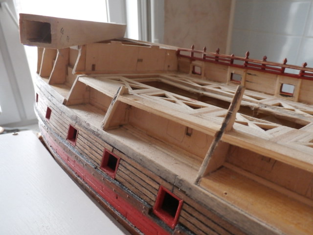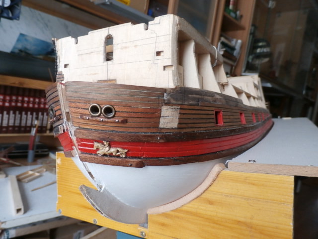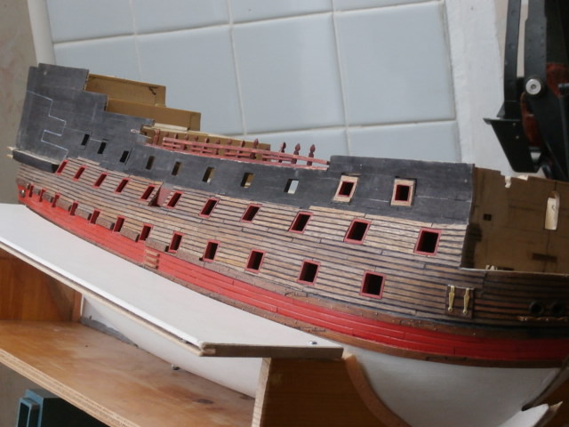 1.Кормовые-кают компании, на обоих бортах корабля? Я о них пока не думал. Собрал только из фанерных деталей - правый да и то чтобы не обмишулиться (Дать маху) при наклейке планок чистовой обшивки модели.