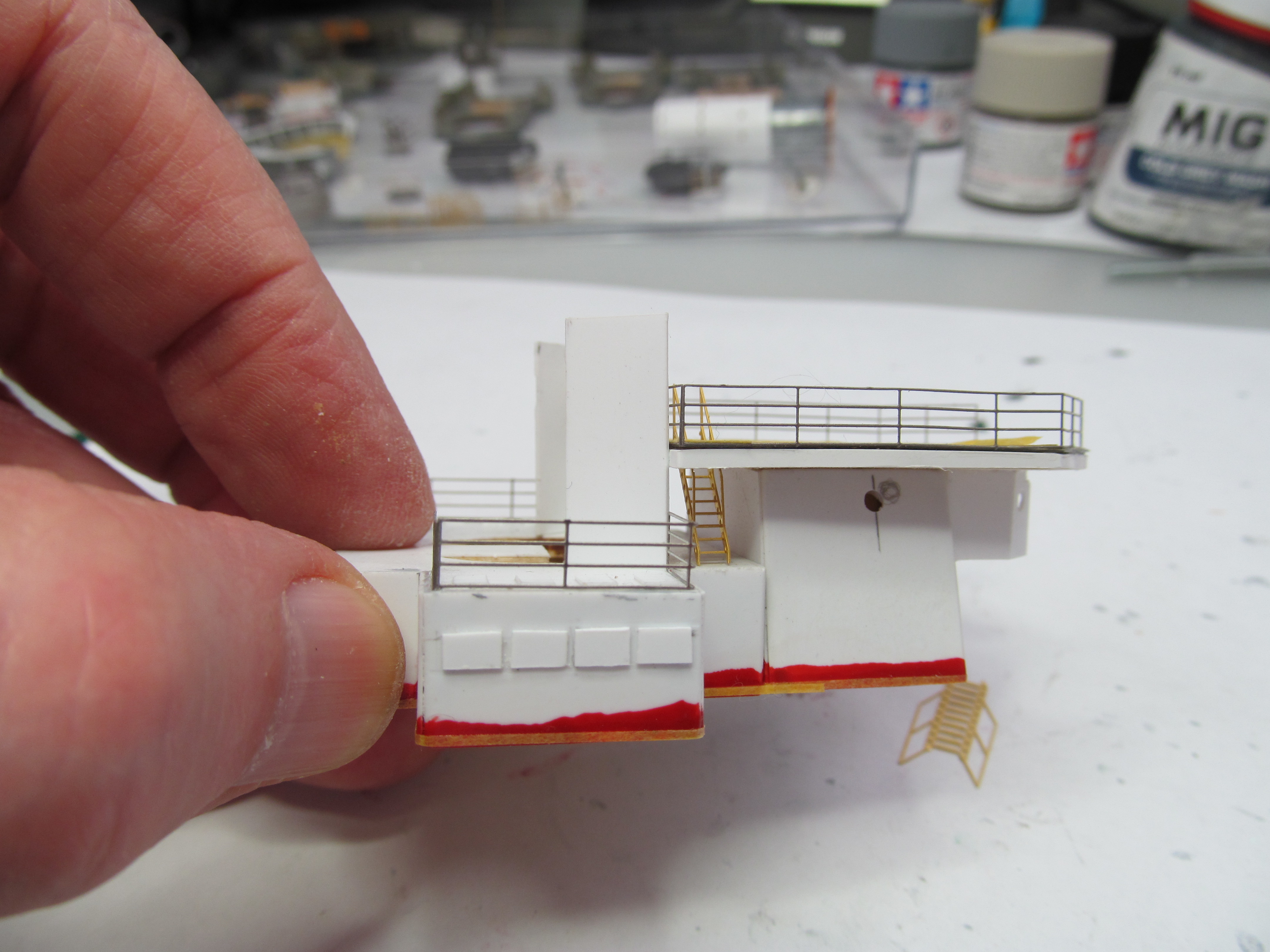 P.S. Ой, ошибочка вышла..... поспешил я, как всегда. Оказывается леерное ограждение на "носик" площадки 2-го уровня ДеАгостини даёт в выпуске №115. Я переделывать уже не буду.