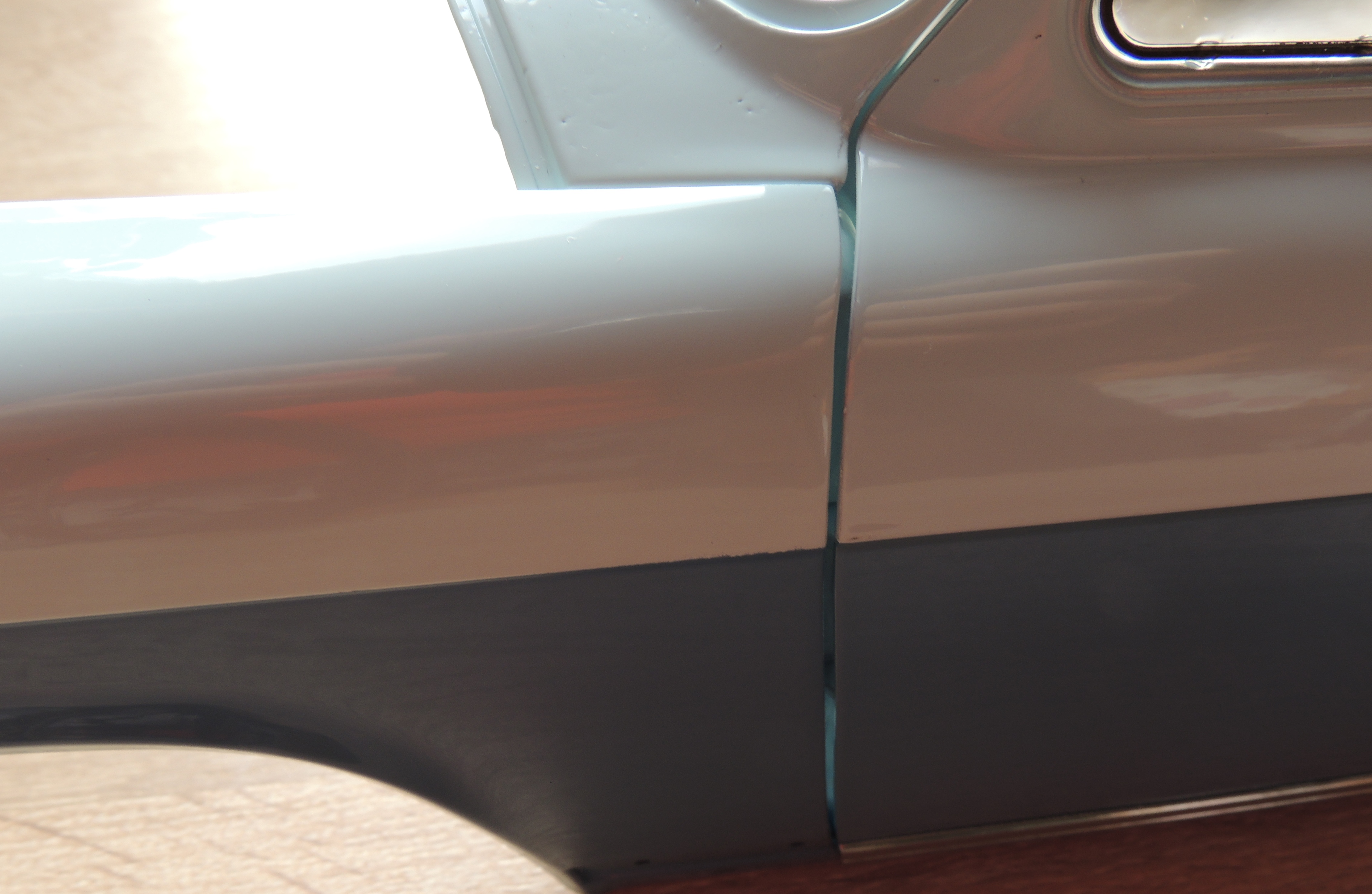 Мне кажется проблема в отливке кузова в форме. Сжалась правая сторона вся. Так как даже молдинг на правом заднем крыле длинней чем положено. Молдинг впереди упирается в дверь, а сзади в фонарь и выпирает из-за этого аж наверх.