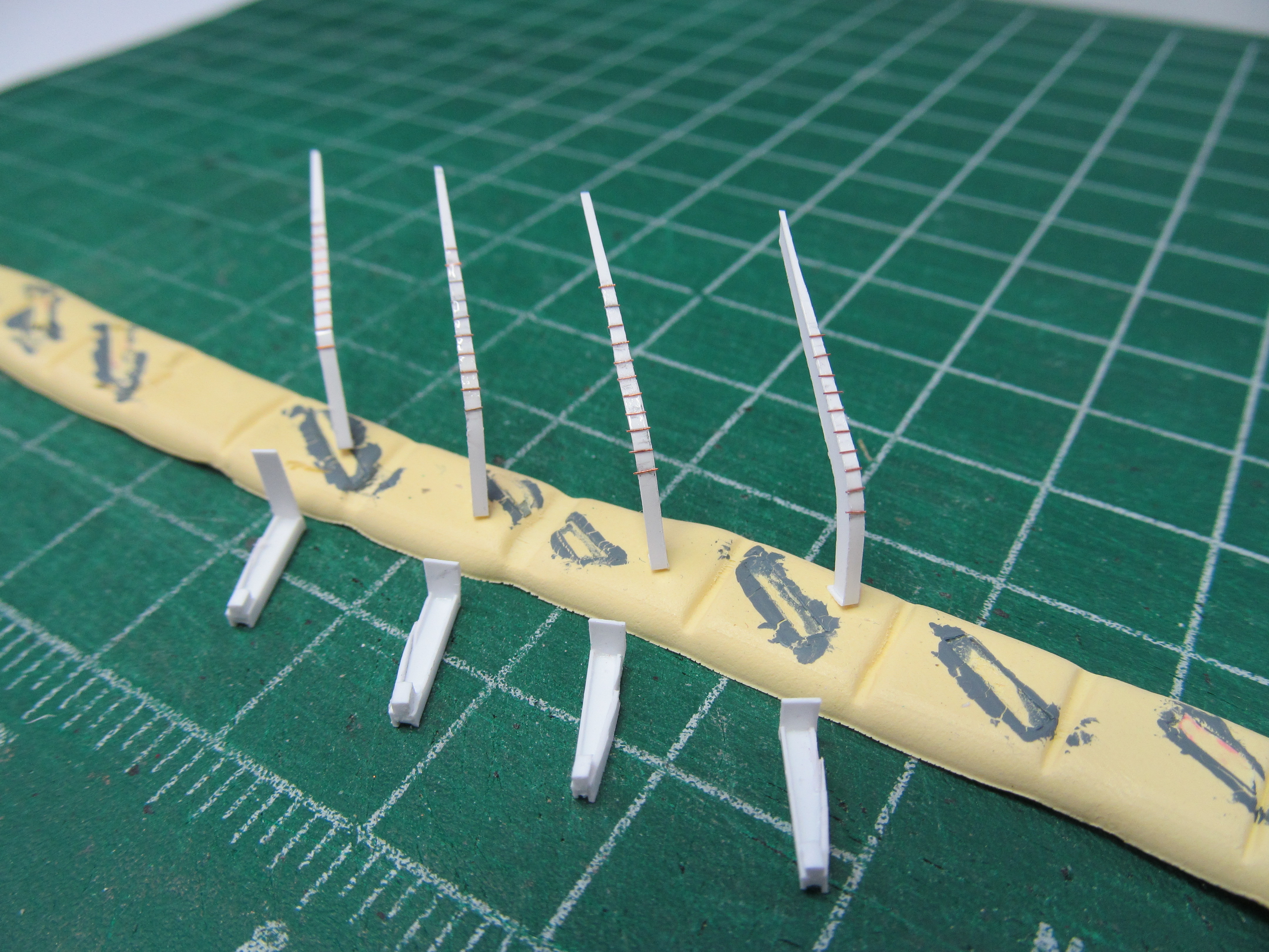 В наборе рейки не имеют ничего общего с палубой настоящего корабля - они шириной 2мм, что в переводе к ширине палубных досок на прототипе равно 40см.