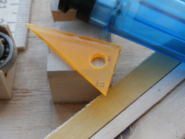 Хочу поговорить о нашем ручном инструменте. Работая с мелкими деталями в строительстве модели столкнулся проблемой отсутствия миниатюрного угольника. Во многих местах корпуса модели со стандартным ,покупном угольником работать сложно, а иногда и просто не возможно. Столкнувшись с проблемой - решил просто, изготовив себе свой - миниатюрный из декоративной пласт.линейки. Размеры не даю, так как они сугубо индивидуальны. Основной рабочий угол 90 градусов Не помешает и угол в 45 градусов.