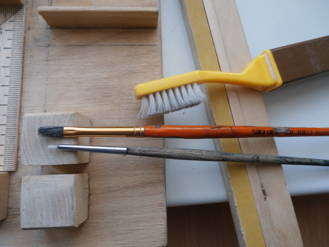 Для склейки деталей ПВА пользуюсь кисточкой. Столкнулся с проблемой - отсутствием в продаже очень тонких кисточек для клея. Во всех магазинах канц.товаров самая тонкая кисточка для клея 4мм. Рабочий орган - щетина. Изготовил самодельную кисть, щетину взял от зубной щетки.
