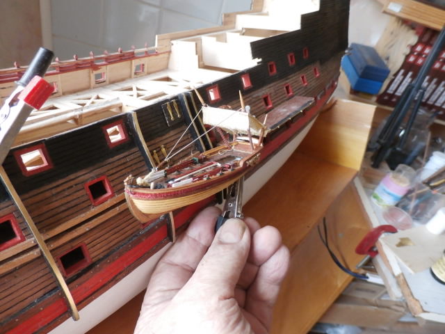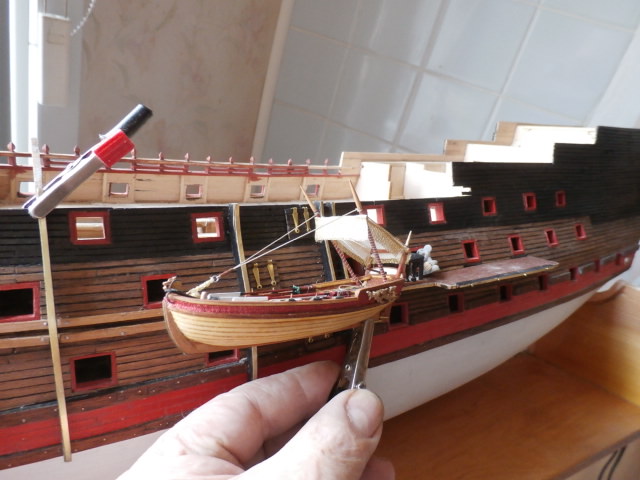 Я особо в шлюпках не продвинулся, но вот вам разница между нашей из патворка и фальконетовской. Странно шлюпка от Фальконета, которая в 72ом масштабе, меньше на сантиметр, и сильно ниже, если ваша не влезает, возьмите эту и ставьте. Я так поставлю обе.