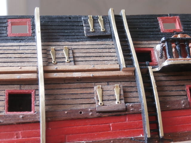 Ну а сейчас будем вести подготовительные работы. Среди прочего закрываем порта крышками , те которые окажутся в районе под"ёма шлюпки. Считаю это большим плюсом в строительстве. Не нужно ломать голову с подвеской крышек над арт.портами в районе под"ёма шлюпки.. Не нужно будет думать над установкой в этих портах фальш.пушек. Подсчитав и примерив у меня, как я понимаю речь идет о пяти портах и пяти пушках. Это значительная экономия и времени строительства и в какой то степени экономии материала. Спасибо ДеА! Молодцы научили экономить!