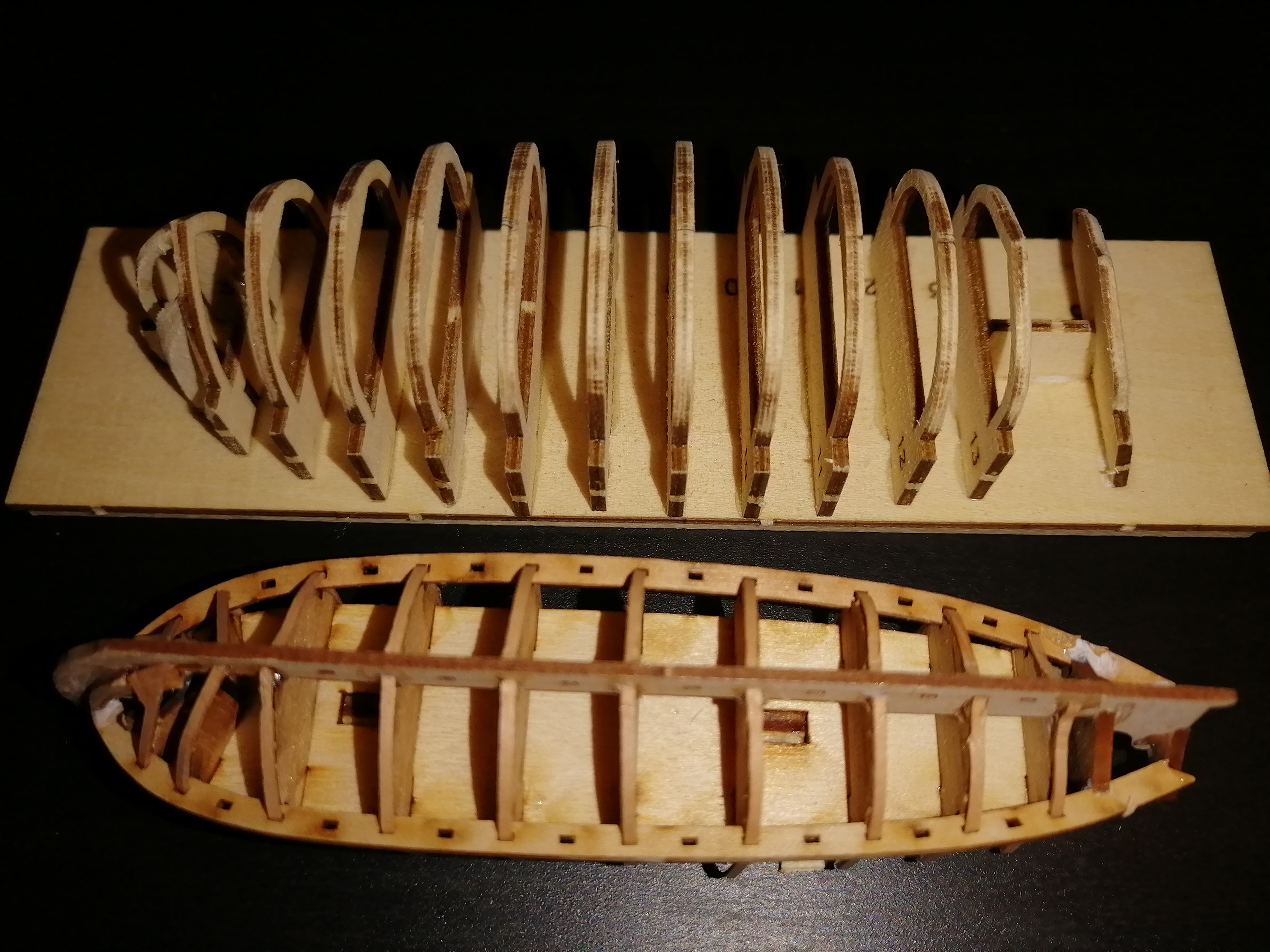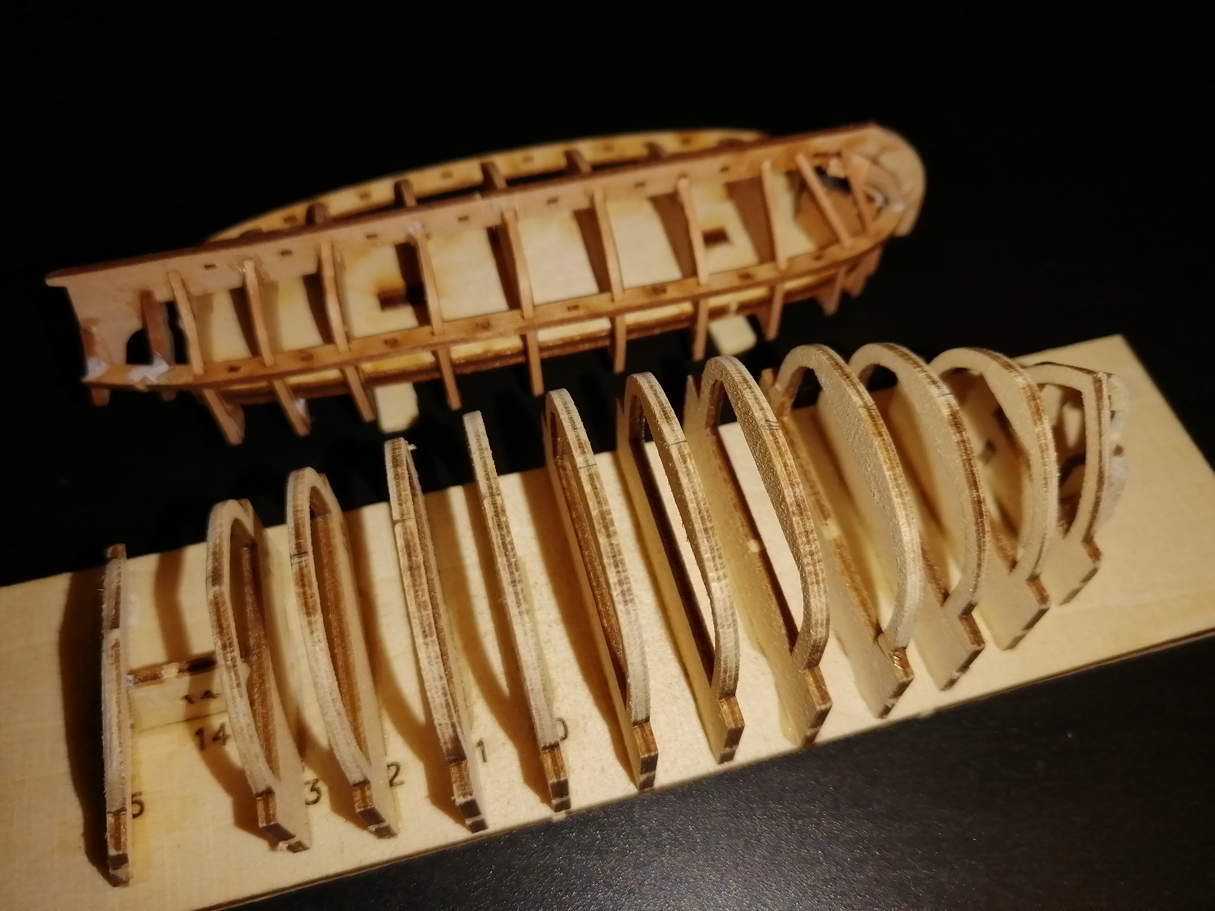 Строительство на моем столе модели парусного линкора продолжается.