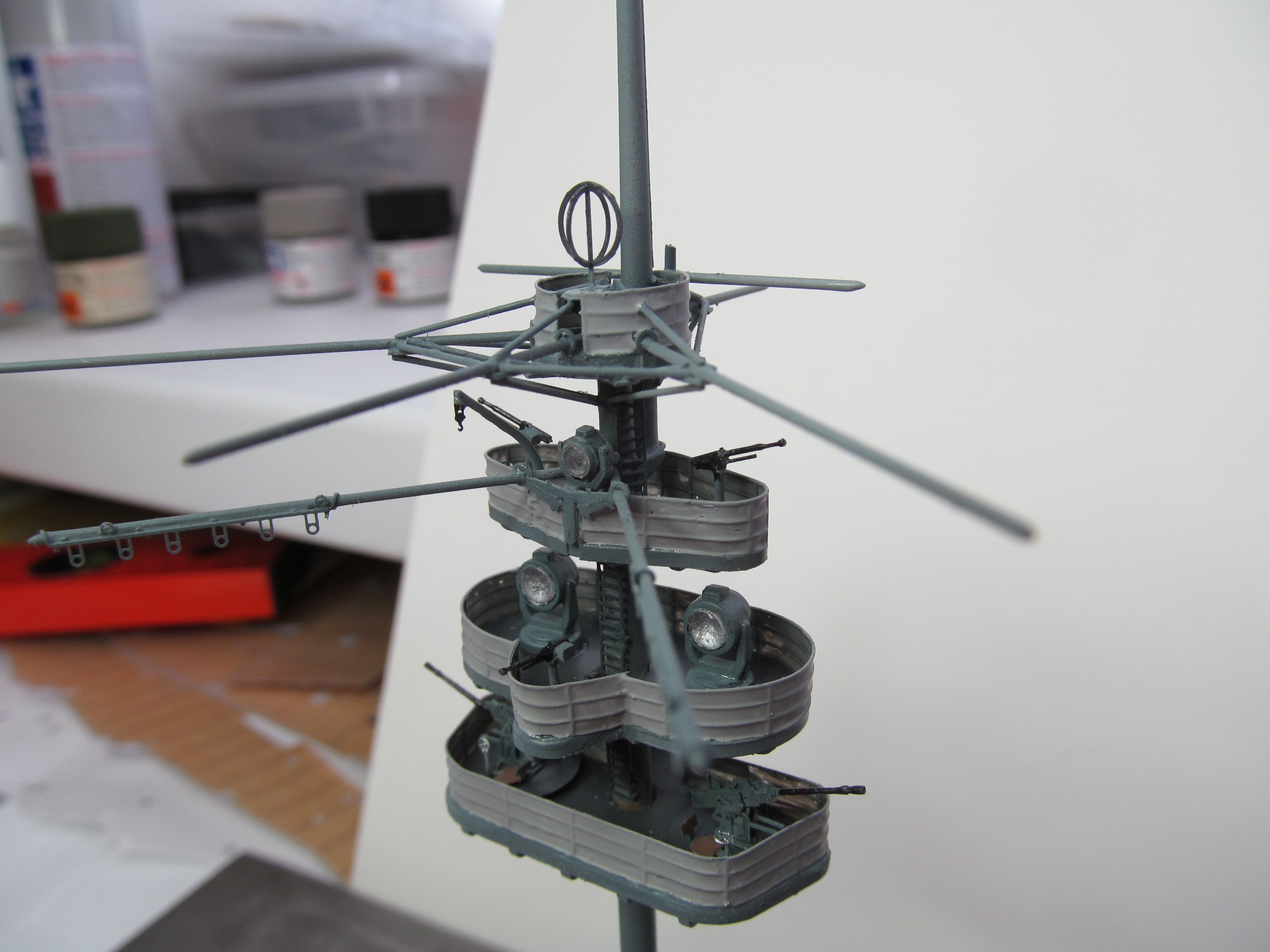 А вот тут засада. Не лезли они по высоте на грот-мачту, да и на носовой надстройке их посадка получалась неправильная - нижний срез прожекторов должен находиться на уровне верхнего среза лееров.