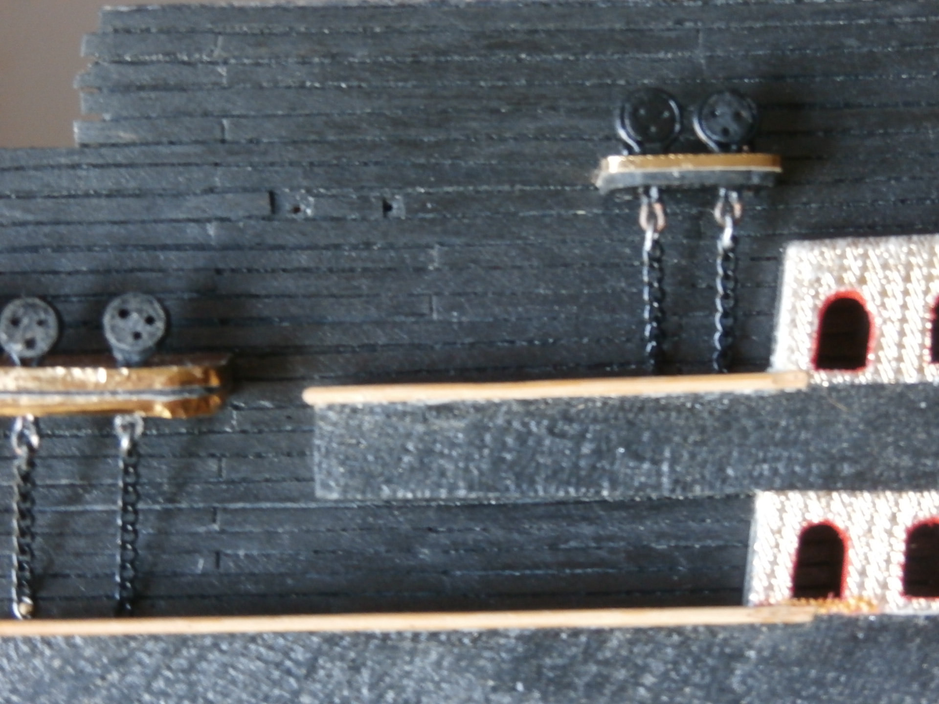 А вот шкентели блоков талей, в английской проводке, как раз были выше, чем в континентальной, поэтому проблем с планширем не будет.